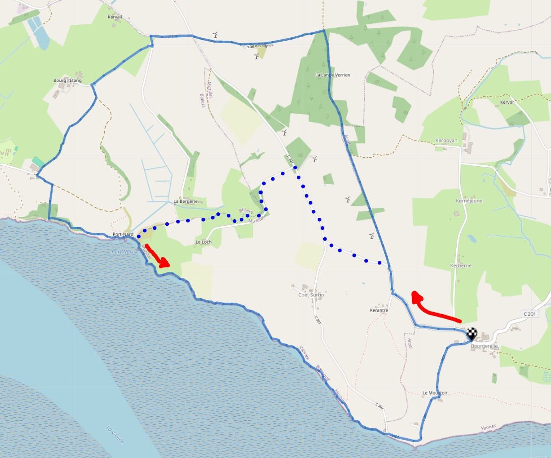 Circuit des vignes entre Bourgerelle, Muzillac et la Vilaine