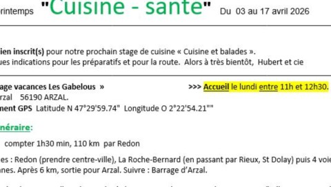Infos pour stage de printemps - Arzal